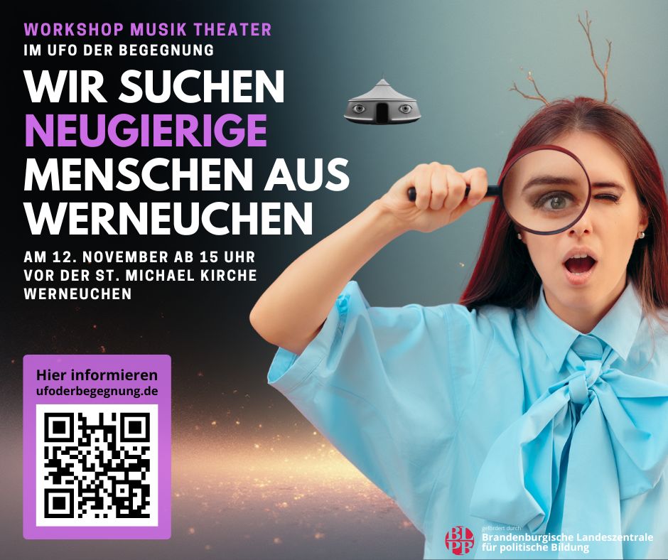die nächste Station unserer Reise durch den Barnim führt uns nach Werneuchen! Am Dienstag, den 11. November, laden wir euch ab 15:00 Uhr herzlich zum Kennenlernen am UFO vor der St.-Michael-Kirche ein. Kommt vorbei, stellt Fragen, lernt die Crew kennen – und erfahrt, was es mit dieser ungewöhnlichen Landung auf sich hat.