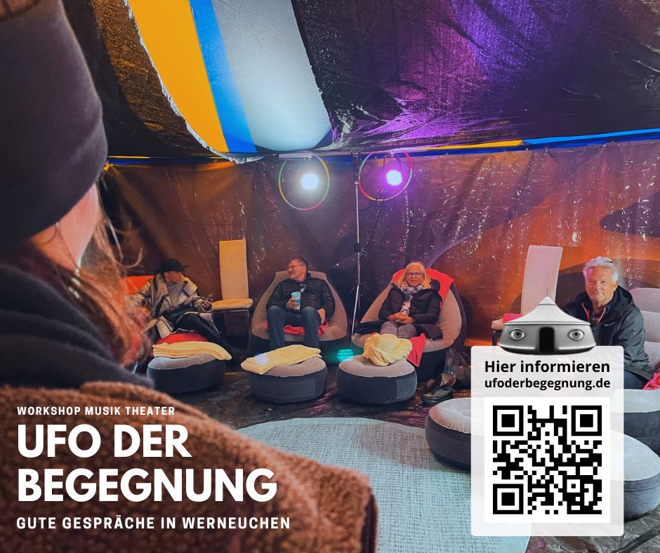 Der Eintritt ist frei. Das UFO ist beheizt, gemütlich und offen für alle, die Lust haben auf Theater, Begegnung und ein bisschen Staunen.